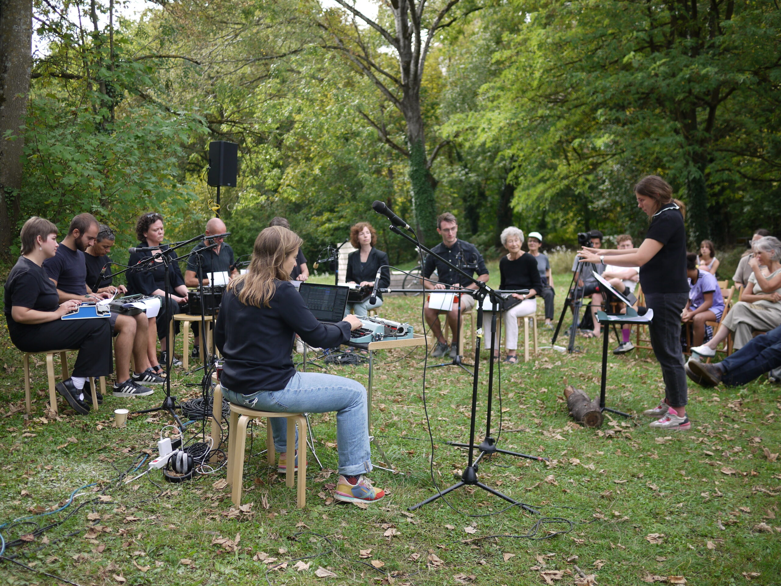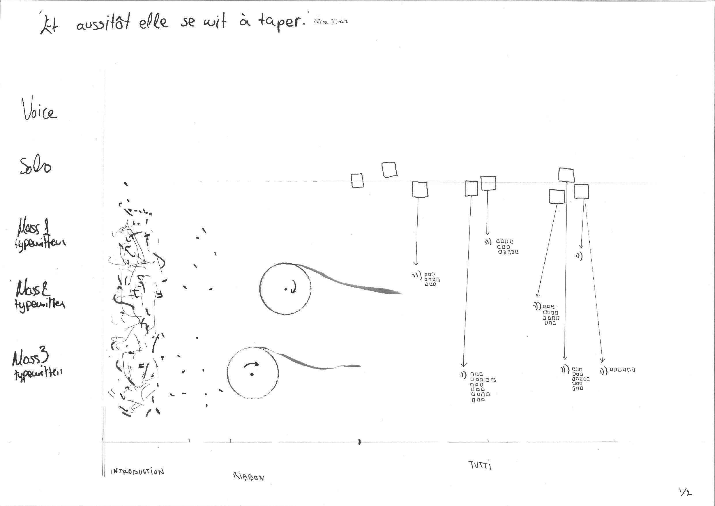 formed with a group of nine people following a precise score composed by K&A. The performance includes a model of the famous Olivetti Lettera 32 that Alice Rivaz herself used, transformed into a musical instrument by Théo Soulié.