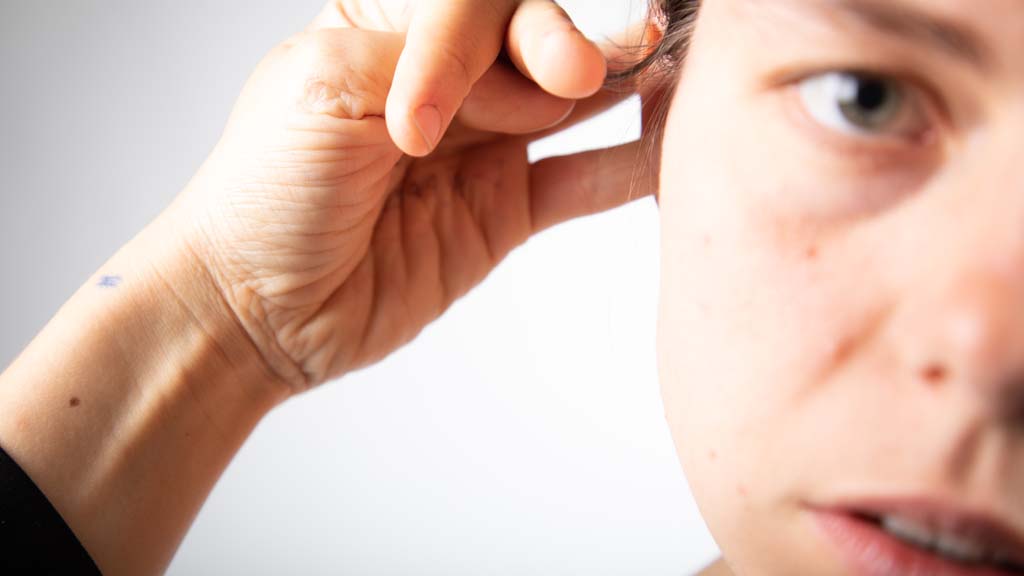 'With MINUS 9 we tease the equilibrium in the hierarchy of the senses. Can the “ear, hear, here” become the touching vestibule of a new order? We challenge the distance in between. When do we allow ourselves to be touched, metaphorically or literally? We invite the audience to re-question and rethink how we relate to each other. In our society a few roles trespass our comfort zone to touch our skin: doctors, caretakers, dance & sport coaches. They touch you but are you really touched? Music touches us emotionally, but what if it would literally touch your flesh?'